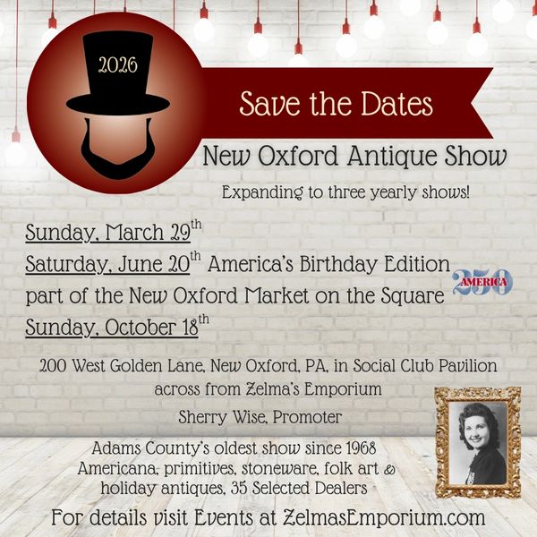 In celebration of America's 250th, a special edition of the New Oxford Antique Show will be held during the Market on the Square! Zelma's Em...